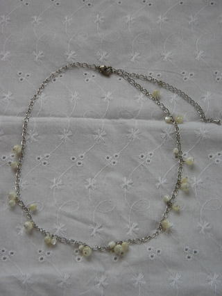 チェーンにマザーオブパールをTピンでジャラジャラ付けてみました。