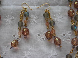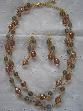 +ローズクォーツとラブラドライト+のネックレスとピアス+を参考に作ったもの。