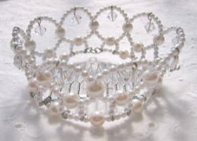 | **試作品 その3** 何を思い立ったのか「ティアラ作りたい…」なんてね。(笑) 実は友人のサトミさんの結婚式にウェルカムドールでプリプを連れて行くと 聞いて思い立ったのがコレ。 試作用でティアラのキットを購入して一通り作ってみました。 このままでも十分プリプにも使えそうですが少し大きめなんですよね。 可愛いできあがりなので満足♪ ビーズを変えて作るとまた雰囲気が違ってgood! |