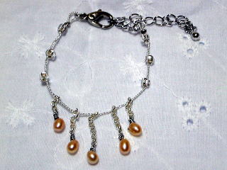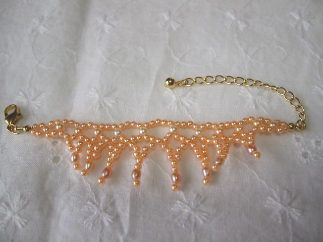 アクセントに淡水パールのピーチピンクを使用。
